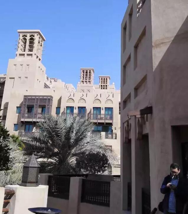 在迪拜美国大学设计学院院长阿尔伯特博士的带领下,我们来到了迪拜的贵族区——朱美拉之城,这里的建筑非常具有阿拉伯的风貌,阿拉伯的建筑用现代的手法来演绎,最绝的是他又和帆船酒店的景色融合在一起,传统的工艺和当代最顶尖的技术并存,传统阿拉伯风情和当代最前沿的风貌并存,两个相差遥远的东西在建筑师的调配下竟和谐共存,在这里喝茶聊天吃饭会是怎么样一种感觉?